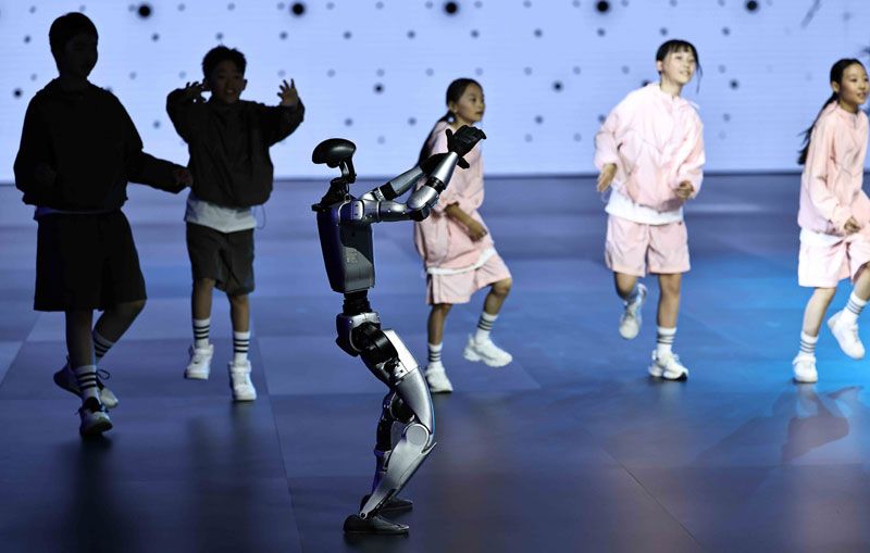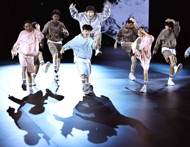 在现场,世界街舞冠军肖杰领衔少年舞团登场,一段热舞吸引机器人前来“Battle”,人与机器竞舞的诙谐画面瞬间点燃舞台。伴随着肖杰及舞团再次登场表演全球热曲《大展鸿图》,全体模特跟随熟悉的旋律与动感节奏挥舞双手,为这场充满力量与希望的大秀画下了一个昂扬向上、意义深远的句点。