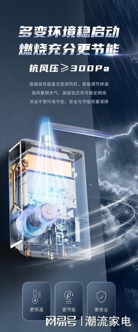 值得一提的是,其强大的环境适应性。产品搭载高性能直流变频风机,抗风压≥300Pa,即便遭遇台风天的强风侵袭,或是身处高层住宅的低压环境,都能智能调节转速,确保燃烧充分稳定。这意味着,住在高层的用户再也不必经历大风天热水器频繁熄火的尴尬,暴雨夜也能安心沉浸在热水的温暖包裹中,这种不受干扰的稳定表现,让舒适感更添一份踏实与可靠。
